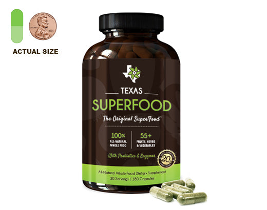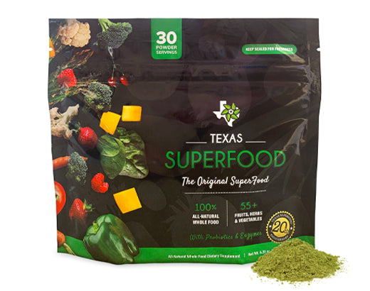 The right food gives you energy. Fresh Raw, Vine-Ripened Vegetables & Fruits are the healthiest foods. That's exactly what's in Texas SuperFood. Nutrient packed natural nutrition to keep you going Strong all day long.†